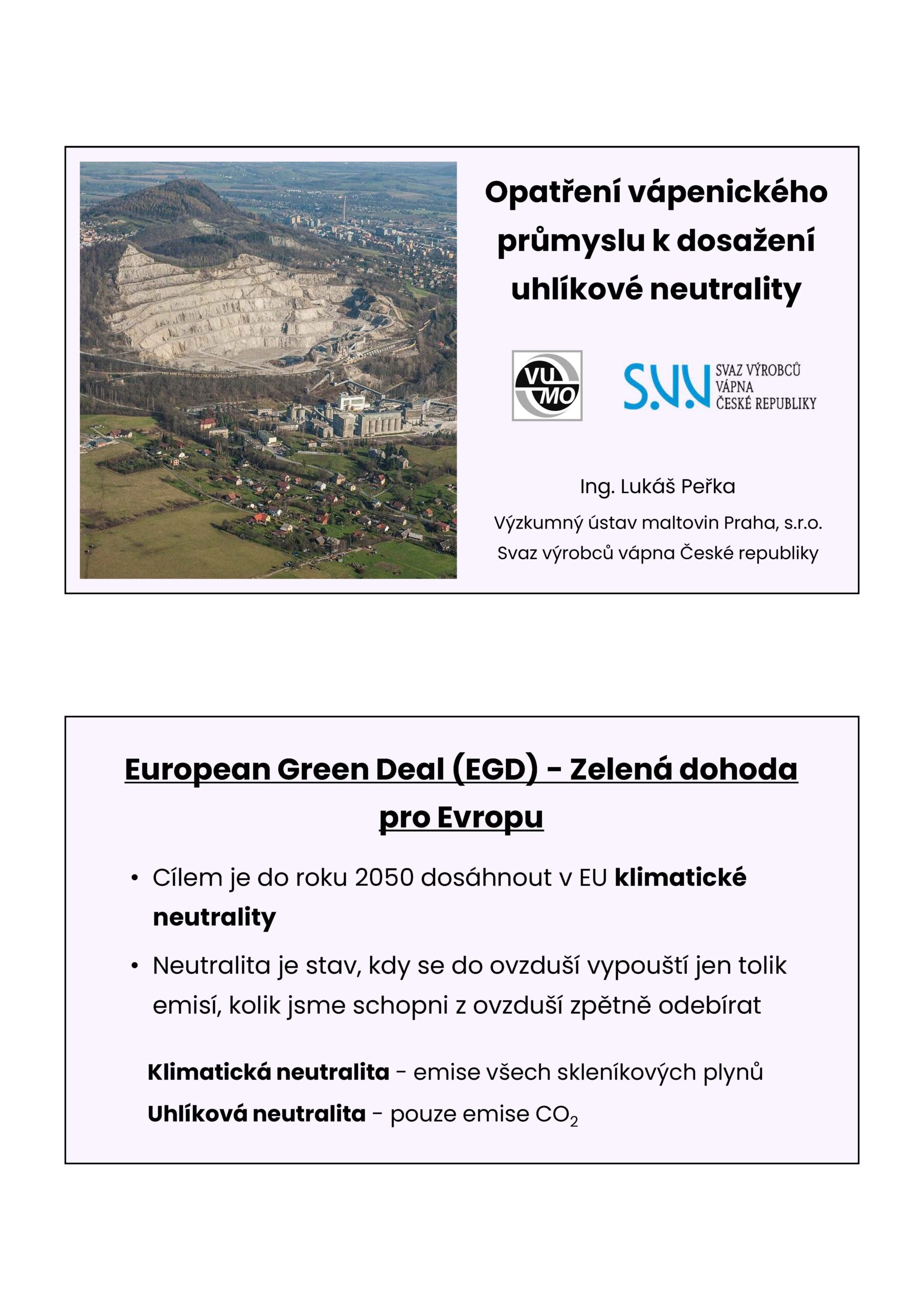 Opatření vápenického průmyslu k dosažení uhlíkové neutrality