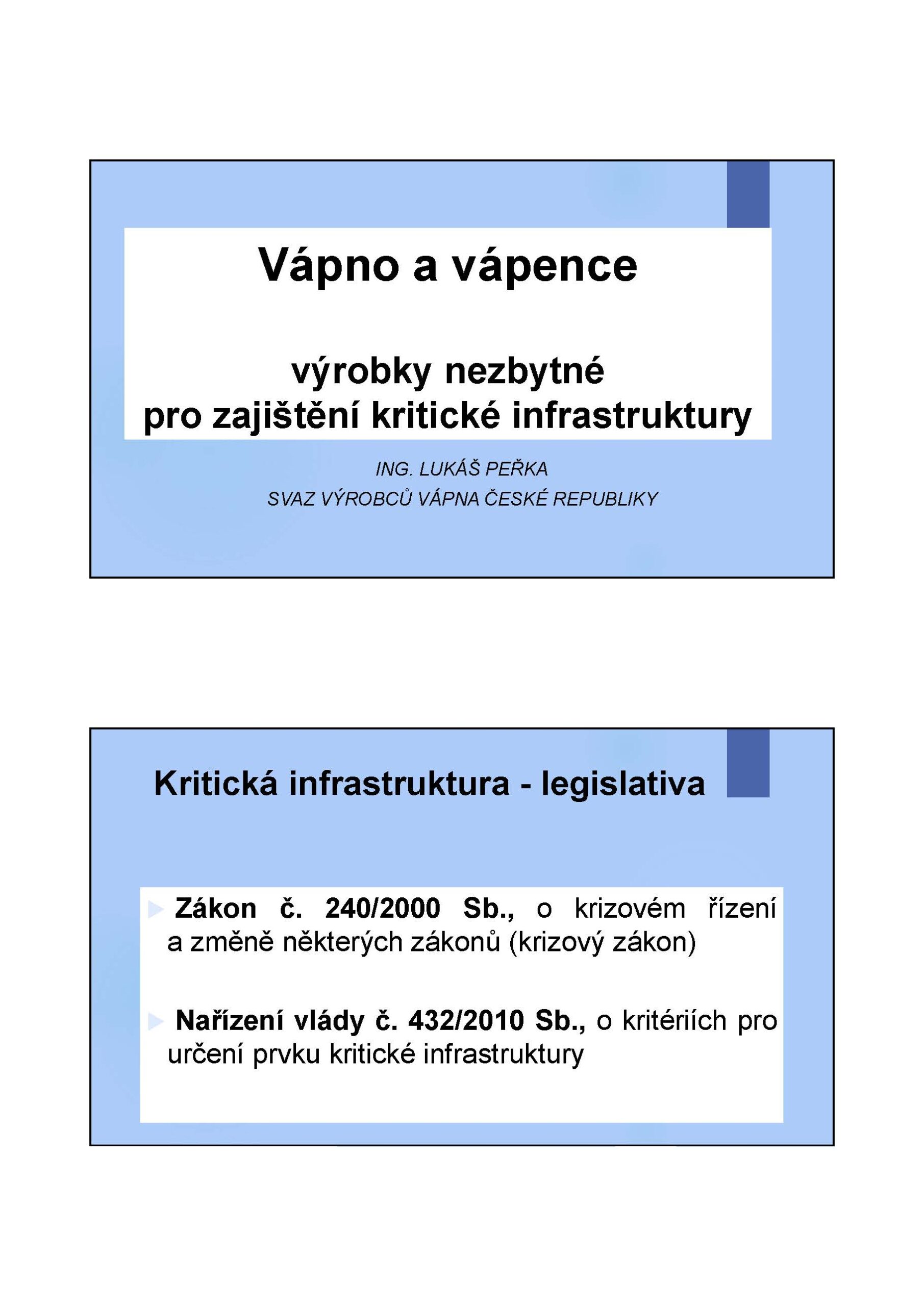 Vápno a vápenec, výrobky nezbytné pro zajištění kritické infrastruktury